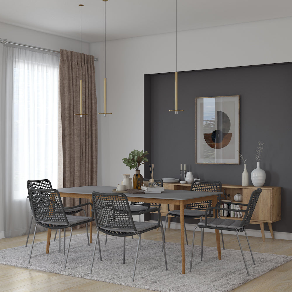 - Dining Table: 75-in L x 35-in W x 30-in H