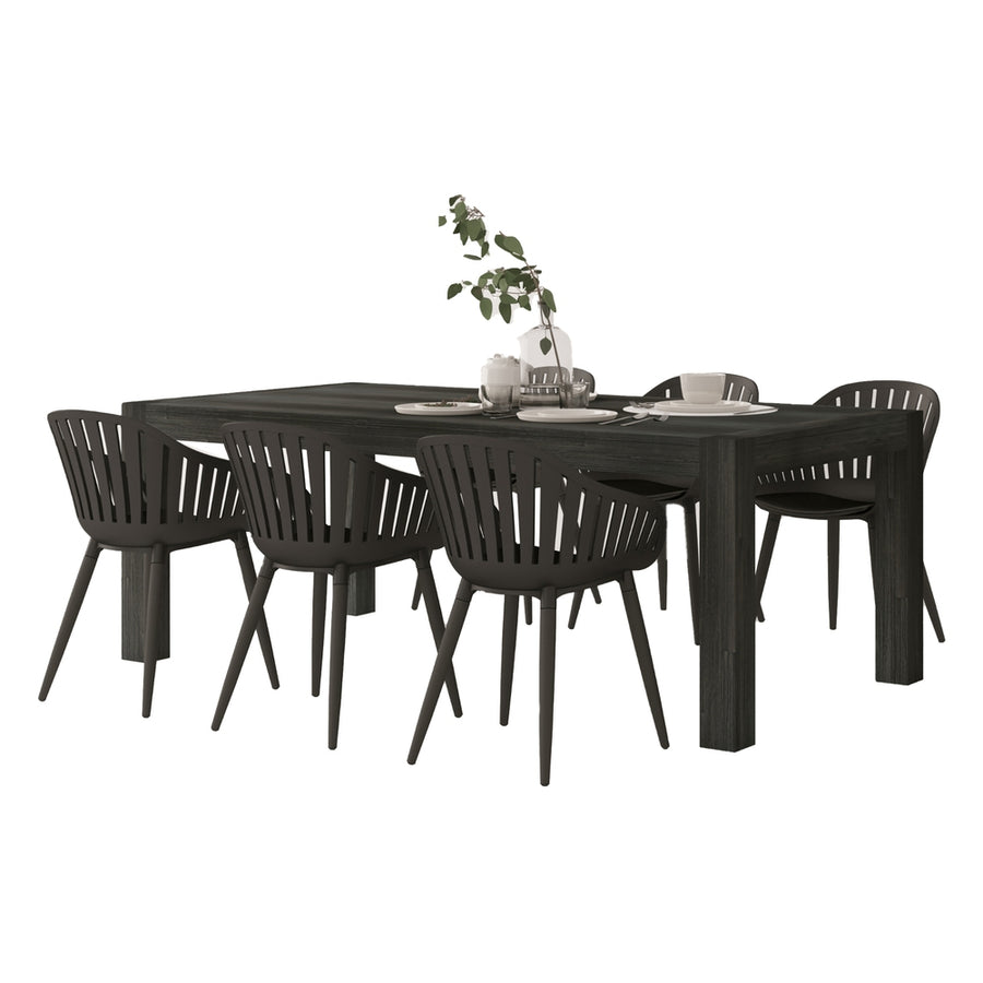 Be prepared to be amazed by this brand-new dining room table set collection by Midtown Concept focused on design, simplicity, and durability. This dining set includes 6 high-quality dining chairs and 1 dining table. A timeless, complete dining room set with a contemporary twist creates a modern ensemble that will make breakfast, lunch, and dinner more enjoyable with your family. For those that prefer dining under the sun, you'll be happy to hear that this kitchen table set with chairs is water resistant which means it can double as a patio dining set for your backyard, deck, or patio. The included dining room chairs are both durable and lightweight, but also sturdy with a weight limit of 250 lbs. as they are made of aluminum with a stylish resin seat. Include the luxury of supreme comfort, grandeur, and sophistication to your home with this kitchen and dining room set.
