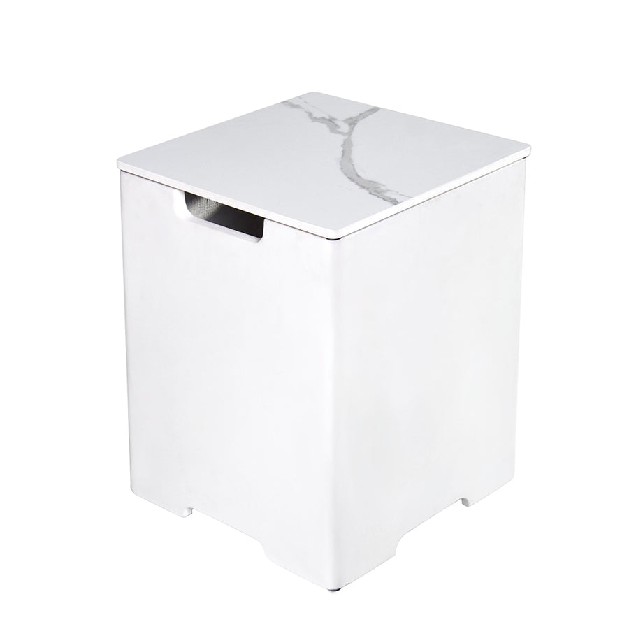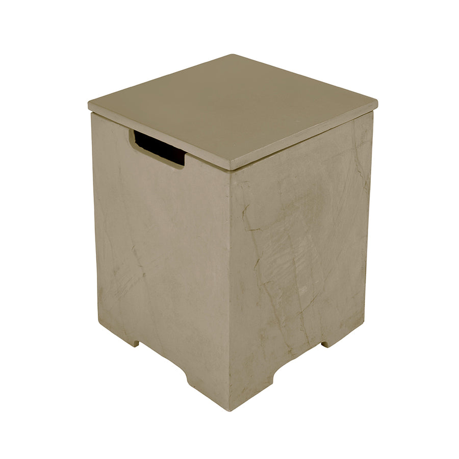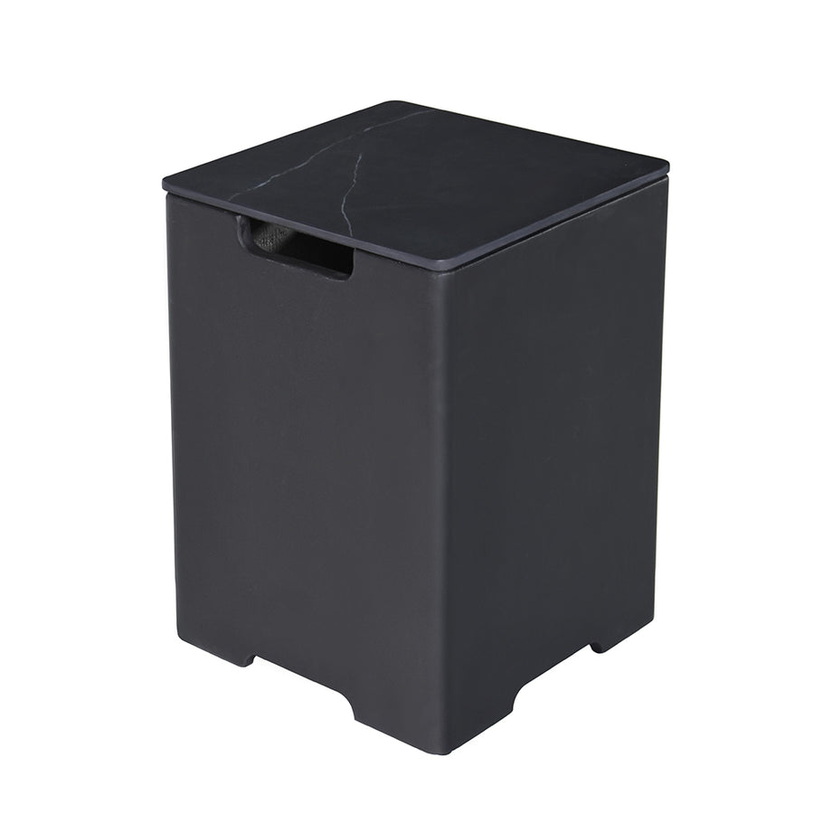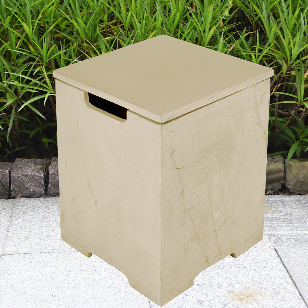Keep your propane tank hidden from sight with a propane tank cover table, which doubles as a side table for your fire pit. The durable cover for propane tanks will blend seamlessly with your outdoor furniture and propane fire pit. Our decorative propane tank cover is not only a stylish end table, but it also serves a practical purpose. The storage box provides ample space to safely store your standard propane tank and elevates your outdoor living space. Enjoy cozy nights by the fire in style with a propane cover that blends seamlessly with your fire pit and is built to withstand the elements. Say goodbye to unsightly propane tanks ruining the aesthetic of your outdoor patio.