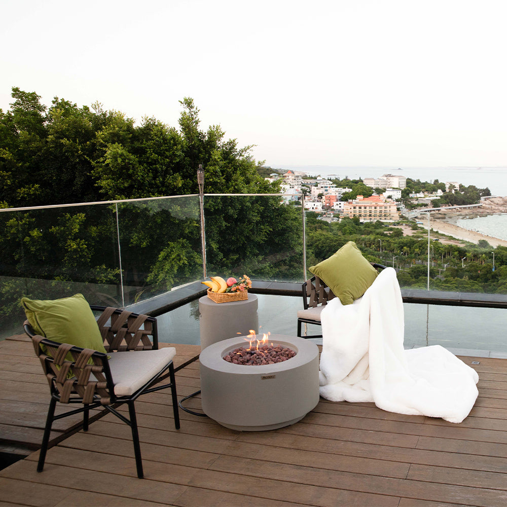 Enjoy the ambiance and warmth of the outdoor fire pits dancing flames in your backyard all year round. The fire pit with canvas cover included with your fire pit table allows you to keep your fire pit outdoors during all seasons, while keeping it protected from any harsh weather conditions. Simply remove the fire pit canvas cover when ready to use on a cold summer night or to entertain guests in the winter. Admire the outdoor fireplaces bright flames reflecting off the lava rocks included with your patio heater while staying warm and cozy within the heating radius of your outdoor centerpiece. Sit back and relax with the patio flame table centered in the middle of your outdoor patio furniture perfect for your backyard, patio, deck, or poolside. Fire pit accessories for outside available for purchase separately.