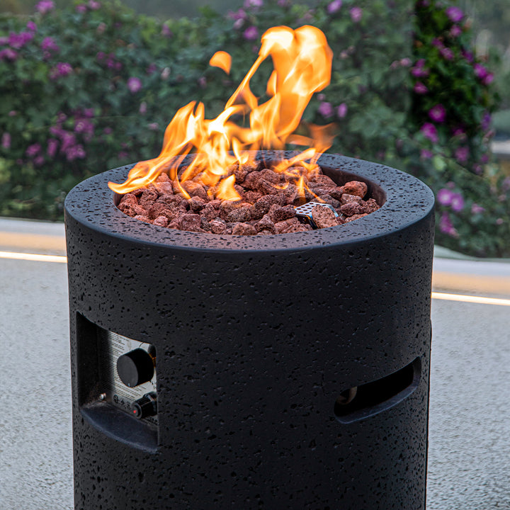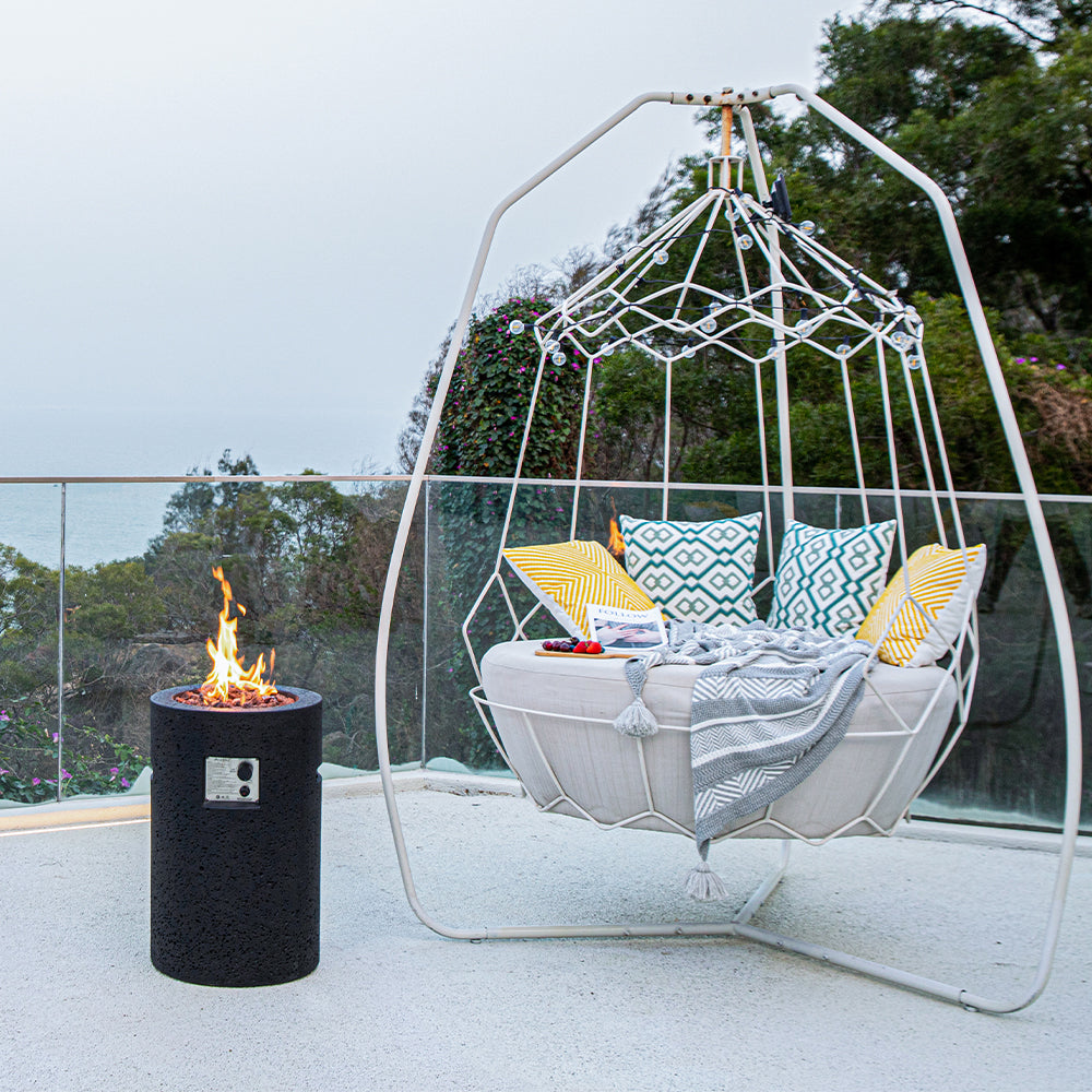 Enjoy the ambiance and warmth of the outdoor fire pits dancing flames in your backyard all year round. The fire pit with cover included with your liquid propane fire pit table allows you to keep your fire pit outdoors during all seasons, while keeping it protected from any harsh weather conditions. Simply remove the propane fire pit cover when ready to use on a cold summer night or to entertain guests in the winter. Admire the outdoor fireplaces bright flames reflecting off the lava rocks included with your patio propane heater while staying warm and cozy within the heating radius of your outdoor centerpiece. Sit back and relax with the patio flame table centered in the middle of your outdoor patio furniture perfect for your backyard, patio, deck, or poolside. Fire pit accessories for outside available for purchase separately.