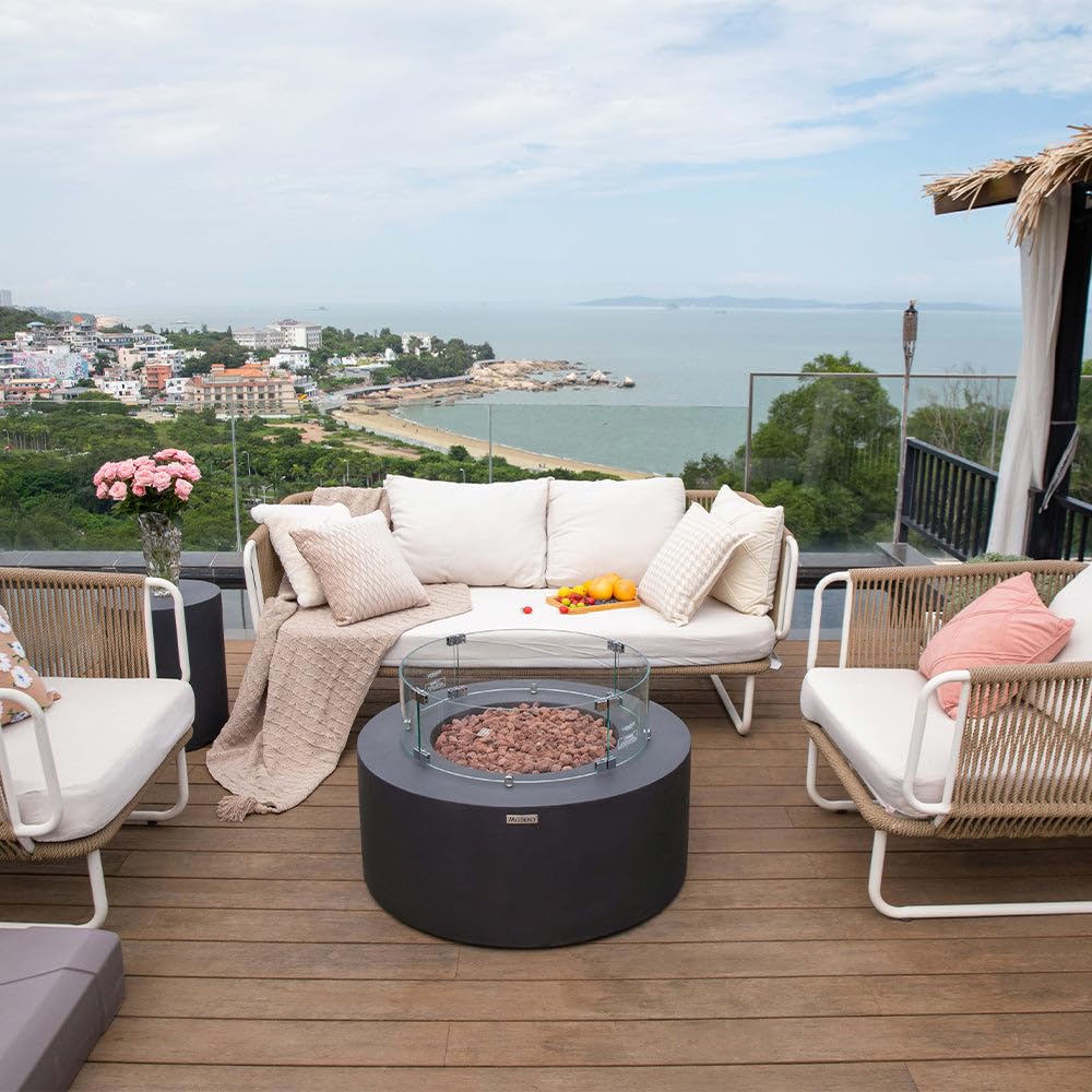 Enjoy the ambiance and warmth of the outdoor fire pits dancing flames in your backyard all year round. The fire pit with cover included with your liquid fire pit table allows you to keep your fire pit outdoors during all seasons, while keeping it protected from any harsh weather conditions. Simply remove the fire pit cover when ready to use on a cold summer night or to entertain guests in the winter. Admire the outdoor fireplaces bright flames reflecting off the lava rocks included with your patio heater while staying warm and cozy within the heating radius of your outdoor centerpiece. Sit back and relax with the patio flame table centered in the middle of your outdoor patio furniture perfect for your backyard, patio, deck, or poolside. Fire pit accessories for outside available for purchase separately.