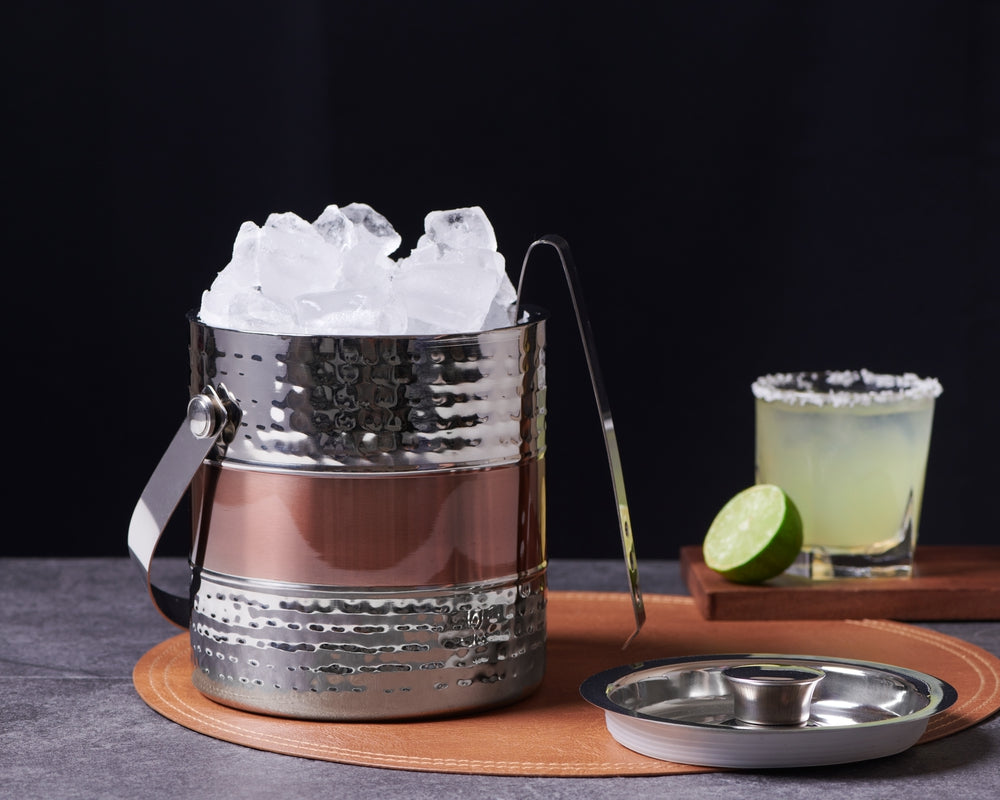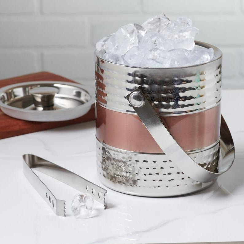 Ice Bucket & Tong - Hammered Copper & Shiny
