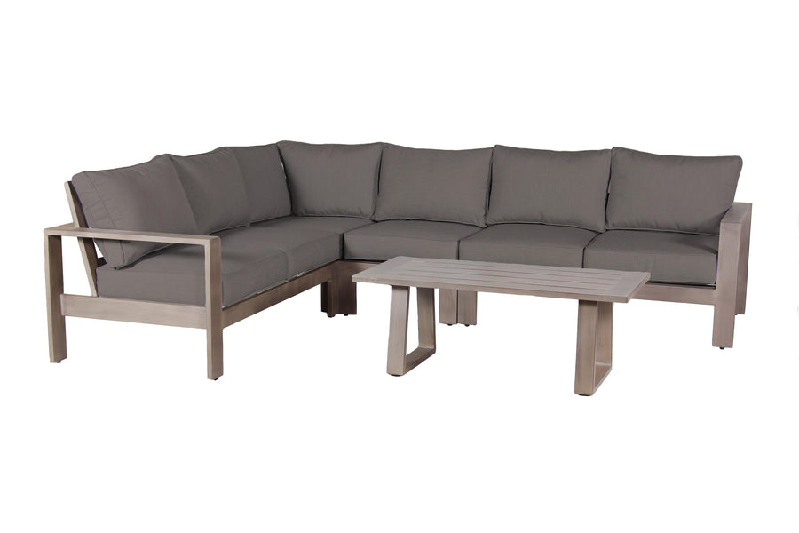 The Aruba outdoor patio furniture sectional sofa with Sunbrella cushions and coffee table are the perfect addition to your outdoor living area. The durable patio sectional with seating for six will revitalize your backyard and garden and become your loved ones favorite place to sit back and relax. The water resistant, mold resistant and fade resistant material allow this piece to remain bright and colorful all year around. It is important to keep the outdoor cushions from being exposed to heavy rain or snow when possible. Put your guests in awe with this outdoor lawn furniture like they have never seen before.