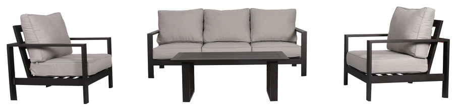 The Atlantis outdoor patio furniture with two club chairs and sofa with beige olefin cushions and coffee table are the perfect addition to your outdoor living area. The durable accent chair and sofa set will revitalize your backyard and garden and become your loved ones favorite place to sit back and relax. The water resistant, mold resistant and fade resistant material allow this piece to remain bright and colorful all year around. It is important to keep the arm chair and outdoor cushions from being exposed to heavy rain or snow when possible. Put your guests in awe with this outdoor club chair like they have never seen before.