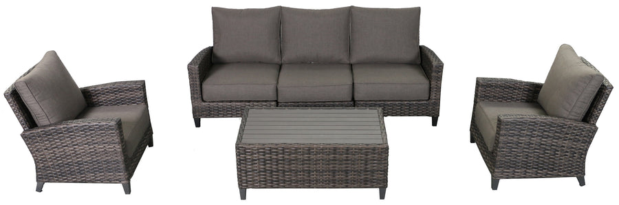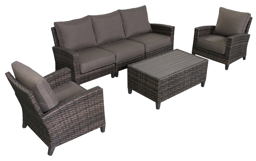The Barbados outdoor patio furniture with two club chairs, one sofa, and one coffee table is the perfect addition to your outdoor living area. The durable accent chair and sofa set will revitalize your backyard and garden and become your loved ones favorite place to sit back and relax. The water resistant, mold resistant and fade resistant material allow this piece to remain bright and colorful all year around. It is important to keep the arm chair and outdoor cushions from being exposed to heavy rain or snow when possible. Put your guests in awe with this outdoor club chair like they have never seen before.