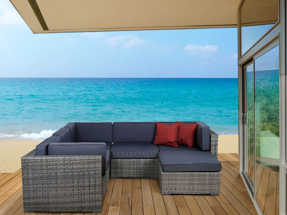 Create an intimate outdoor seating space with the Bellagio 6 piece wicker seating set. This outdoor wicker patio furniture set includes three corner pieces, two middle pieces, and one ottoman piece. Seat cushions are included. No assembly is required.