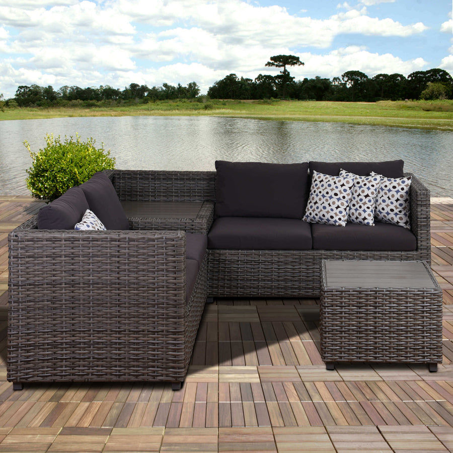 Re-vamp your backyard space with the modern and trendy Atlantic Cebu 5 piece sectional set. This outdoor furniture set includes one left corner two-seater and one right corner two-seater, both with storage space. Assembly is required for the sofa set.