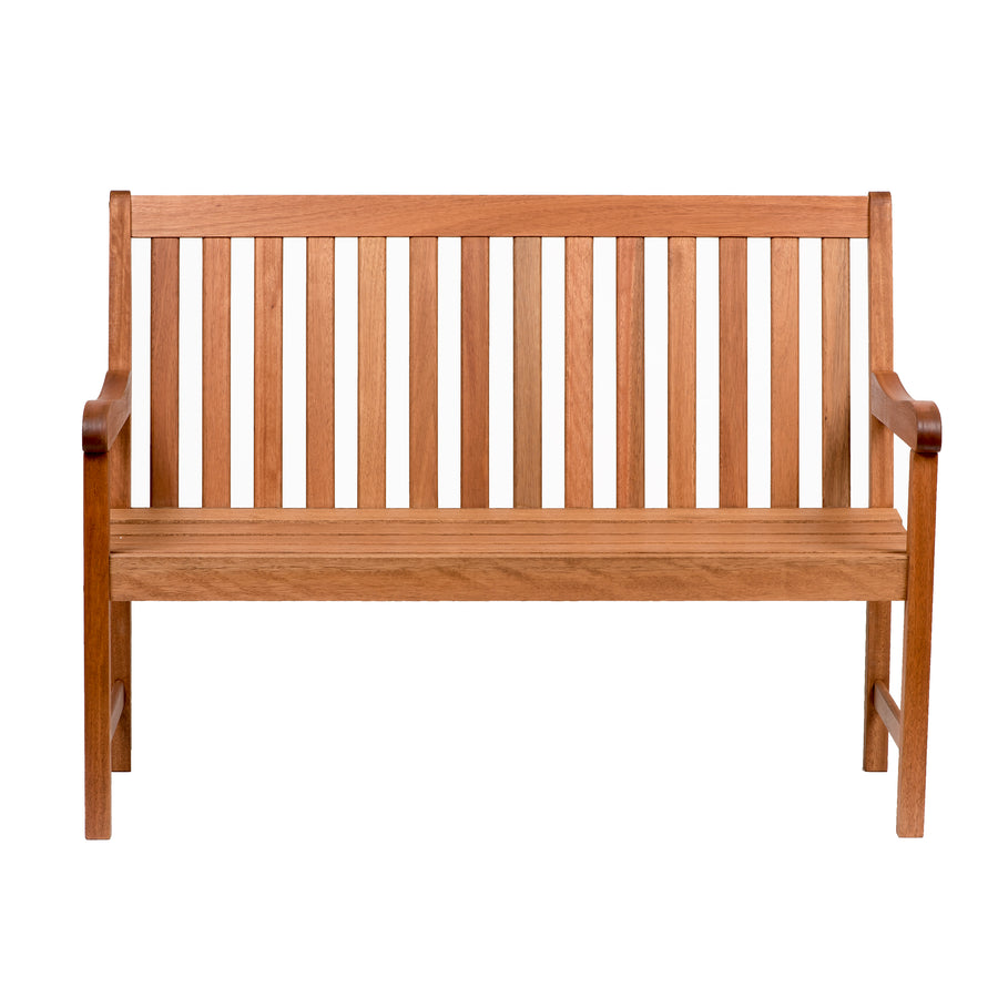 Enjoy a relaxing summer evening in your backyard with the Milano Eucalyptus outdoor patio conversation seating 5 piece set. This durable outdoor patio furniture set includes one bench, two armchairs, one coffee table, and one side table. Assembly is required for the table and chairs.