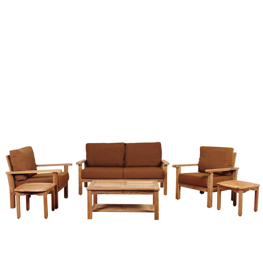 Enjoy a relaxing evening outdoors with friends and family with the Amazonia Gilli 6 piece teak outdoor patio conversation set. This conversation set includes one love seat sofa, two armchairs, one coffee table, and two side tables. Includes Sunbrella seat cushions. Assembly is required.